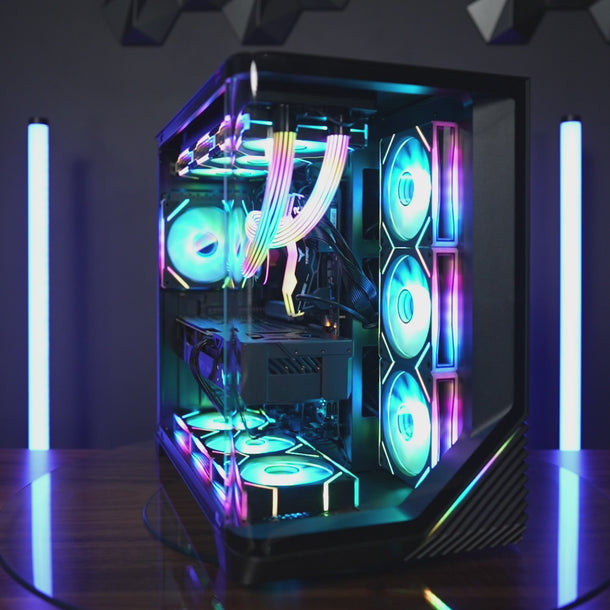 It includes a Custom Cooler Display integrated into the cooling system, adding a premium, futuristic element to your PCs interior. Dynamic RGB lighting completes the aesthetic, giving you full control over the mood and look of your setup.